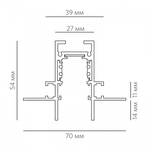 SPACE F TRACK B (1m) — встраиваемый шинопровод для магнитной трековой системы Space 48V. Профиль из чёрного алюминия длиной 1000 мм предназначен для монтажа в гипсокартон с последующей шпаклёвкой и окрашиванием. После финишной отделки на поверхности остаётся только аккуратная чёрная полоса шириной 27 мм — минималистичный графический элемент, который становится частью архитектуры потолка. Никаких накладных коробов, только чистая линия, готовая принять магнитные светильники.