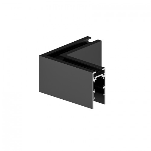 SPACE N UGL L B (FOR CANAL) — чёрный угловой соединитель на 90° для магнитной трековой системы 48V Space. Предназначен для механического поворота шинопровода SPACE N TRACK в одной плоскости при монтаже в натяжной потолок. Габариты 100×100×54 мм. Корпус из алюминия с чёрной порошковой окраской. Соединитель устанавливается внутрь углового профиля-канала UGL L SPACE CANAL и жёстко фиксирует два отрезка трека, образуя Г-образный узел. Внутренние стенки точно повторяют геометрию шинопровода, исключая люфты и перекосы.