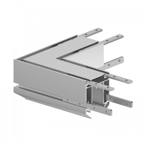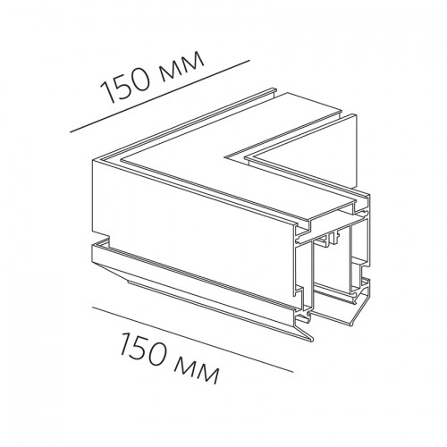 UGL L SPACE CANAL — угловой соединитель на 90° для алюминиевого профиля-канала SPACE CANAL. Габариты 150×150×66 мм. Изготовлен из алюминия, поверхность матовая, устойчивая к окислению. Деталь предназначена для формирования Г-образных поворотов трассы при монтаже магнитной трековой системы для натяжного потолка. Соединитель стыкует два отрезка профиля-канала SPACE CANAL под прямым углом, обеспечивая жёсткость конструкции и непрерывность линии до натяжки полотна.