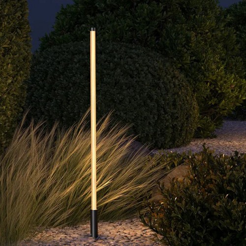 SOLO LS380 3.27 B — ландшафтный светильник-столбик чёрного цвета со сплошной цилиндрической засветкой. В отличие от моделей с линзой, он светится равномерно по всей длине корпуса, создавая мягкий, ненавязчивый фоновый свет. Алюминиевый корпус с порошковой окраской устойчив к коррозии и механическим нагрузкам, а степень защиты IP65 обеспечивает полную пыленепроницаемость и защиту от водяных струй, позволяя использовать светильник круглый год при температурах от -25°C до +50°C.