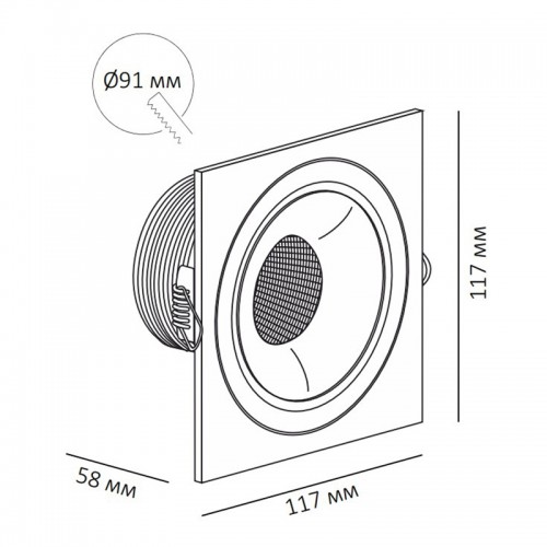 Квадратный встраиваемый светодиодный светильник SFERA R 11.30 W FB – это архитектурный контраст, где белый корпус обрамлён строгой чёрной рамкой размером 117×117 мм. Двухуровневая конструкция раскрывается в графическом рисунке: внешний чёрный контур чётко отделяет световую зону, а внутренняя ниша с заглублённым источником создаёт мягкое рассеянное свечение, которое плавно огибает край и заполняет пространство. Такое решение формирует эффект «светящегося кольца» без прямых бликов, подчёркивая геометрию интерьера. Светильник монтируется в круглое отверстие диаметром 91 мм и благодаря совместимости с модульными рамками (1F, 2F) позволяет создавать как одиночные акценты, так и ритмичные световые линии.