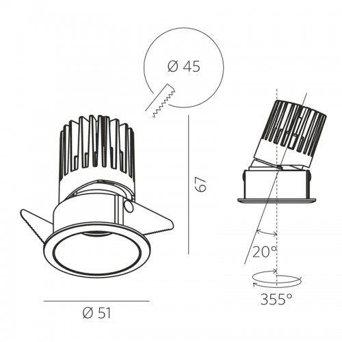 Опционально оснащается антибликовыми решётками для уменьшения слепящего эффекта и оптическими линзами для создания угла света 15° и 50°.